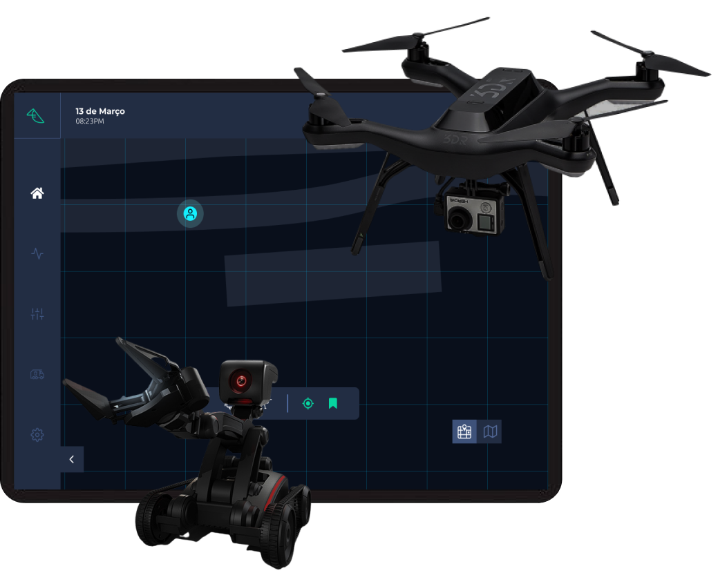 Um sistema de rastreamento e coleta de lixo de praia. Drone e robô configurados por uma IA e uma interface onde o usuário pode controlar esses periféricos.
